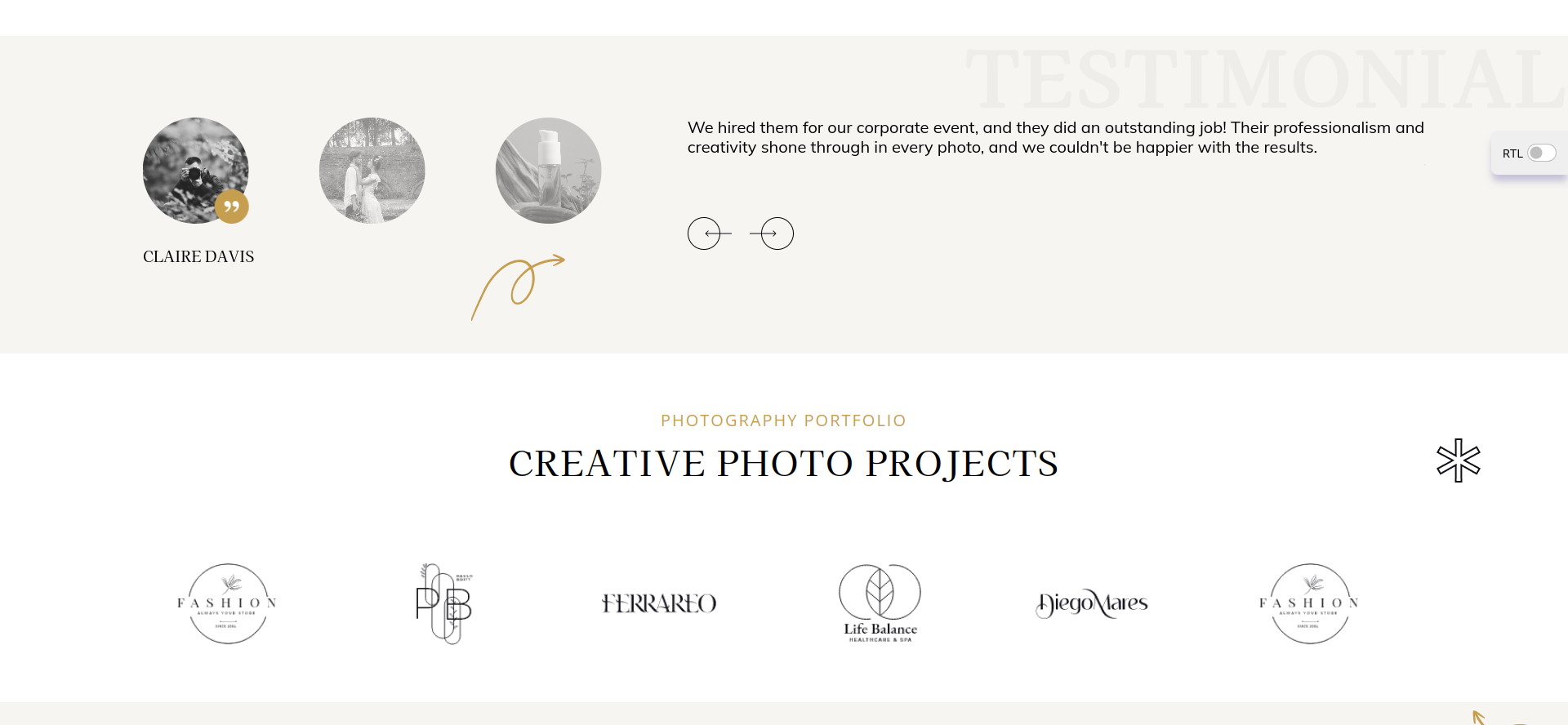 Positive word of mouth is powerful, and this theme allows you to leverage it. Integrate a dedicated testimonial section where you can display glowing reviews from satisfied clients. These testimonials serve as social proof, building trust and credibility with potential clients who may be unfamiliar with your work. Knowing that others have had positive experiences with your services puts them at ease and makes them more likely to choose you for their photography needs.